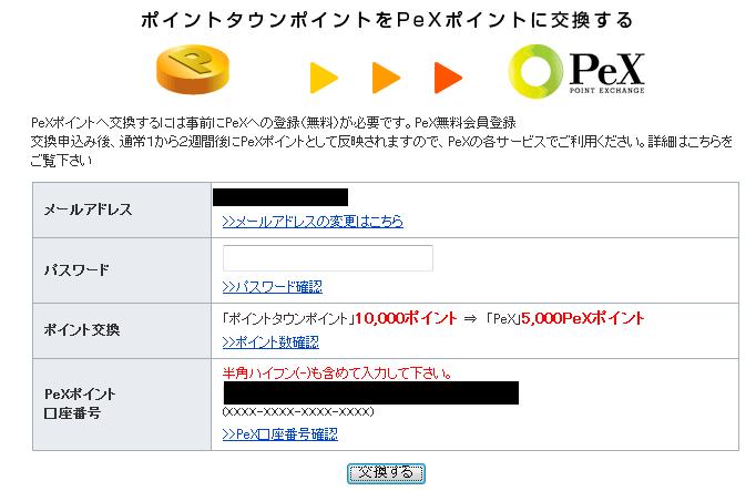 ポイントタウンポイント20000でPeXポイント10000相当です。