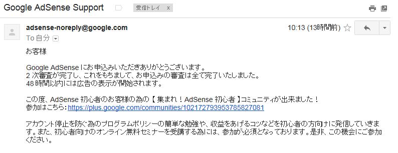 Google Adsenseの審査が一発通過だった