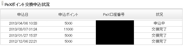 ポイントタウンポイント20000でPeXポイント10000相当です。