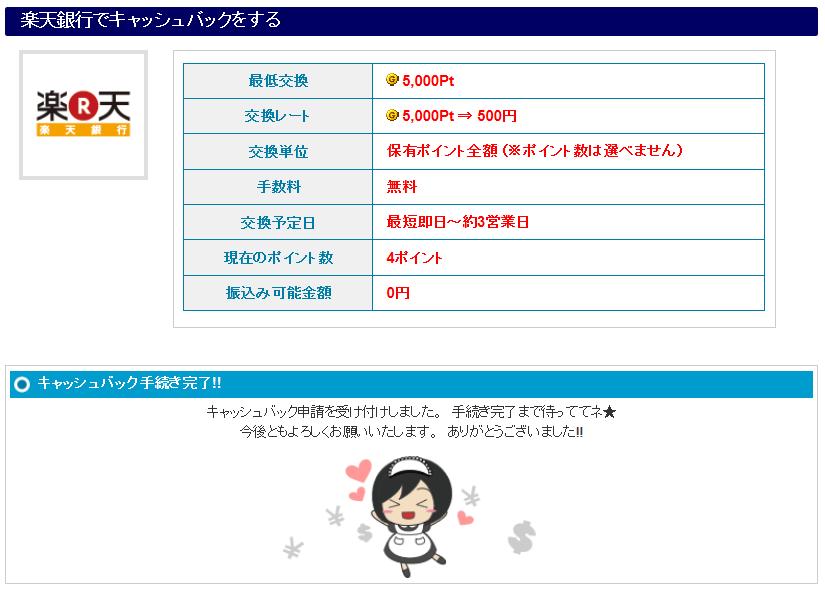 GetMoneyは換金依頼時の全ポイントが無条件で一括換金になります。で、1円=10ポイントなので、もしかして端数は交換時に切り捨てられるんじゃないかと思って必ず下1けたを0にしてたんですが、端数の4ポイントはちゃんとのこりましたねw