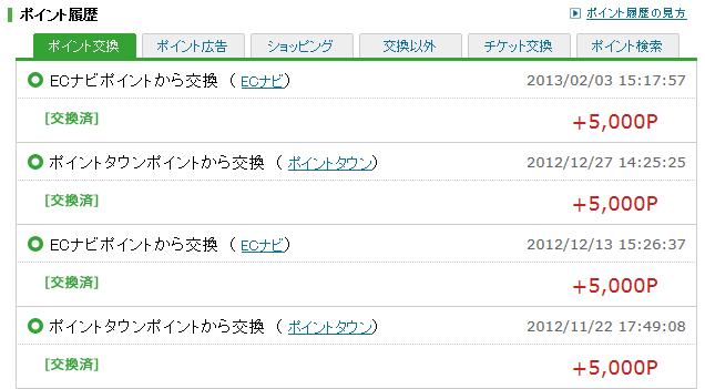 実際にはPeXという別のポイントサイトを通しての交換になり、交換先でレートが若干違います。PeXというのはECナビと同じ会社がやっているポイントサイトです。