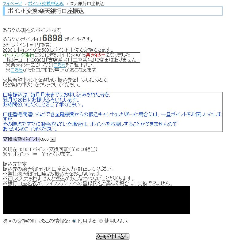 ライフメディアのポイントがいつのまにか6800ポイントになっていた。