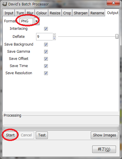 あと、今回は画像をpng形式にすることにしました。pngにするには、outputタブのFormatをPNGに変えます。他のパラメータは変えませんでした。